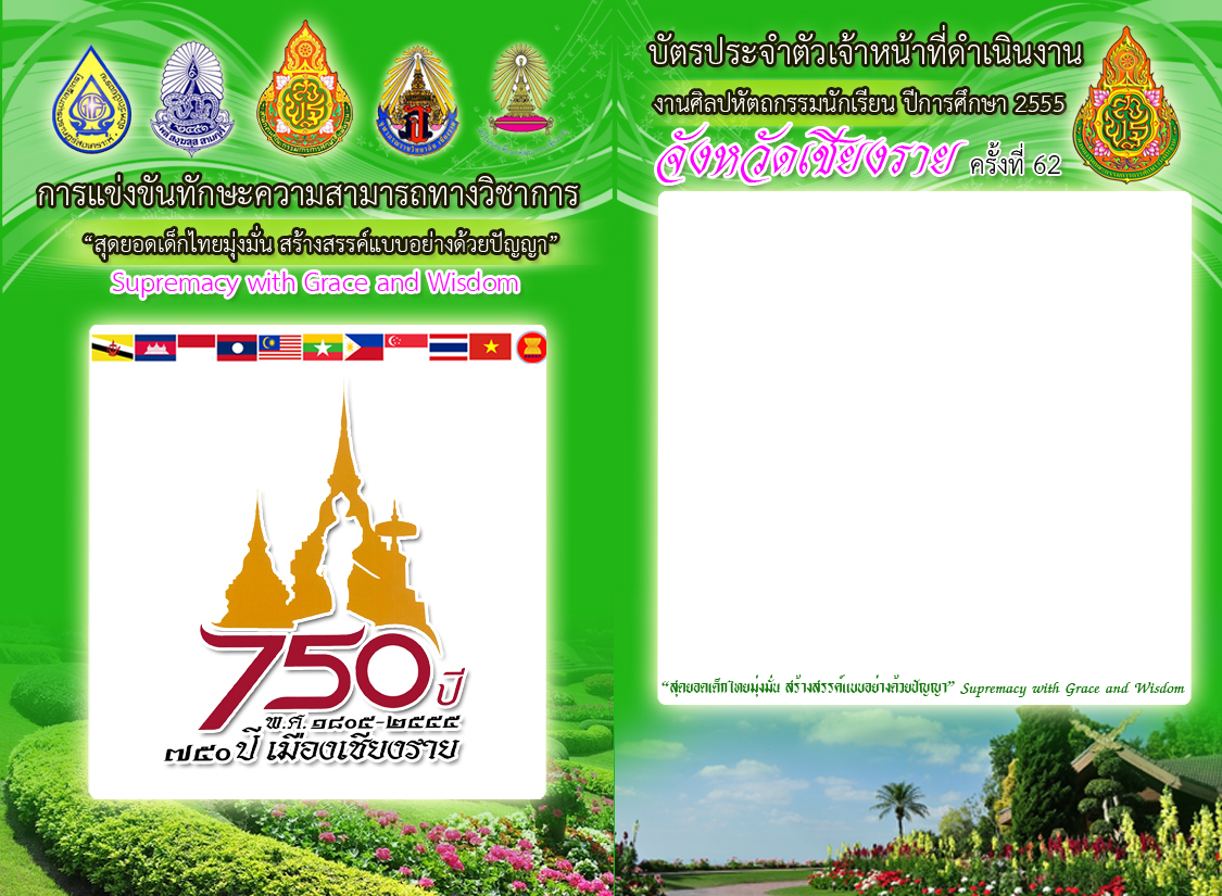 รูปแบบบัตรประจำตัว มีขนาดเท่ากับ (1125x825 pixels) ตัวอักษรควรวางรูปให้มีพื้นที่ว่างในการพิมพ์เนื้อหาส่วนที่เกี่ยวข้องกับการแข่งขัน